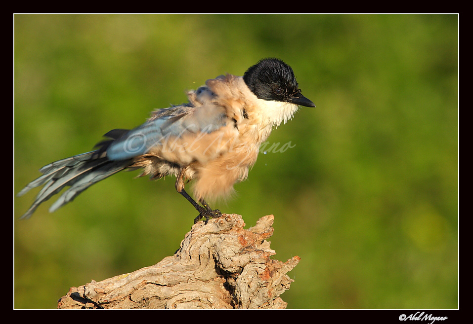 El rabilargo (Cyanopica cyanus) es una experice muy abundante en nuestra zona, es una especie sedentaria, una vez que forman un bando, permanecen en el de forma indefinida. Es una especie gregaria y colonial y con la peculiaridad que realizan cría cooperativa:esto significa que la mitad de los nidos tienen de 1 a 3 ayudantes a parte de los padres para realizar la cría de los pollos; estos ayudantes suelen ser machos sin pareja, mayoritariamente jóvenes o individuos que han fallado en su reproducción, por lo tanto esta ayuda comporta un incremento en la tasa de cebas y en la defensa de los nidos, provocando un aumento del éxito reproductor. Los progenitores, al contrario que en otras especies, responden a la presencia de la ayuda aumentando su propia inversión.